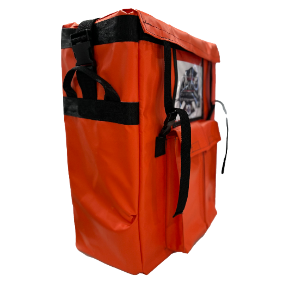 Its construction includes removable Coroplast inserts, providing both strength and rigidity to withstand rugged environments while maintaining the integrity. The backpack is equipped with padded, adjustable shoulder straps, ensuring comfort during extended wear, even in demanding conditions. Additionally, two spacious front pockets measuring 12 inches by 5 inches by 1.5 inches each offer convenient storage for essential accessories, allowing firefighters to keep necessary tools close at hand. With dimensions of 24 inches in height, 20 inches in width, and 9.5 inches in depth, this backpack offers ample storage capacity while remaining compact and manageable for easy transport through challenging terrain.